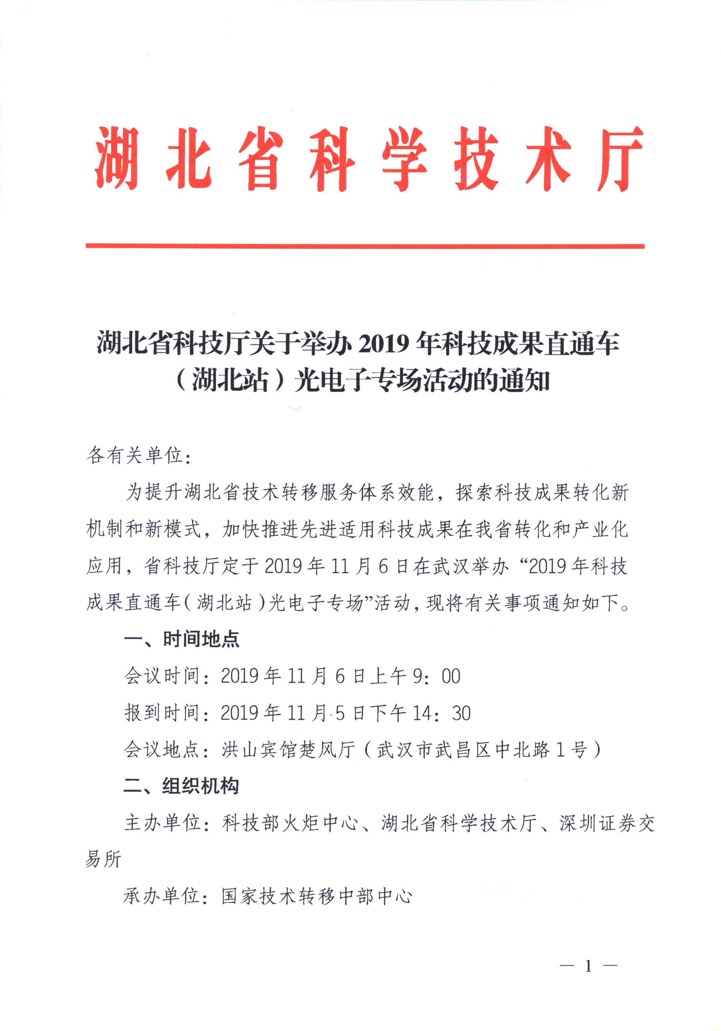 附:关于开展2019科技成果直通车(湖北)光电子专场的通知