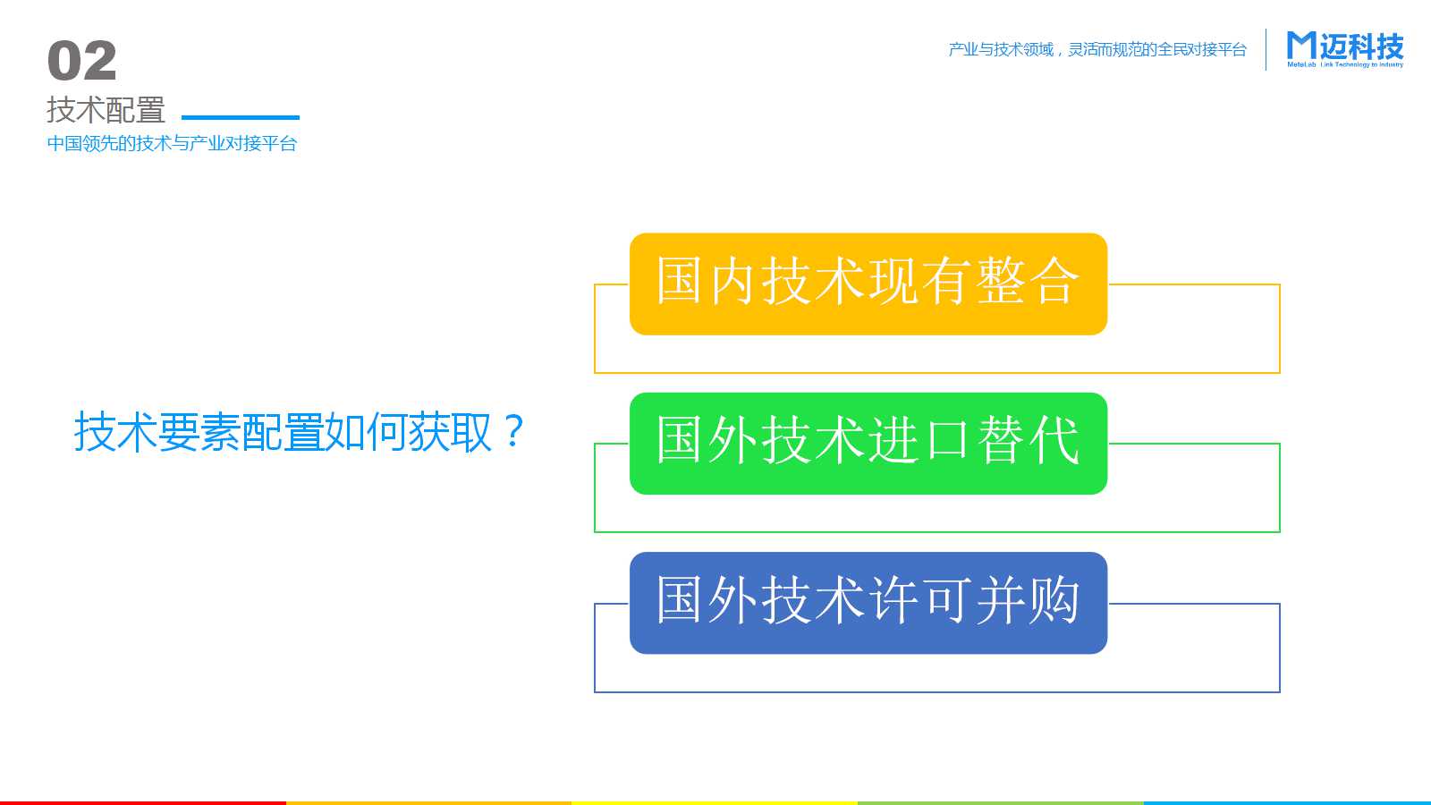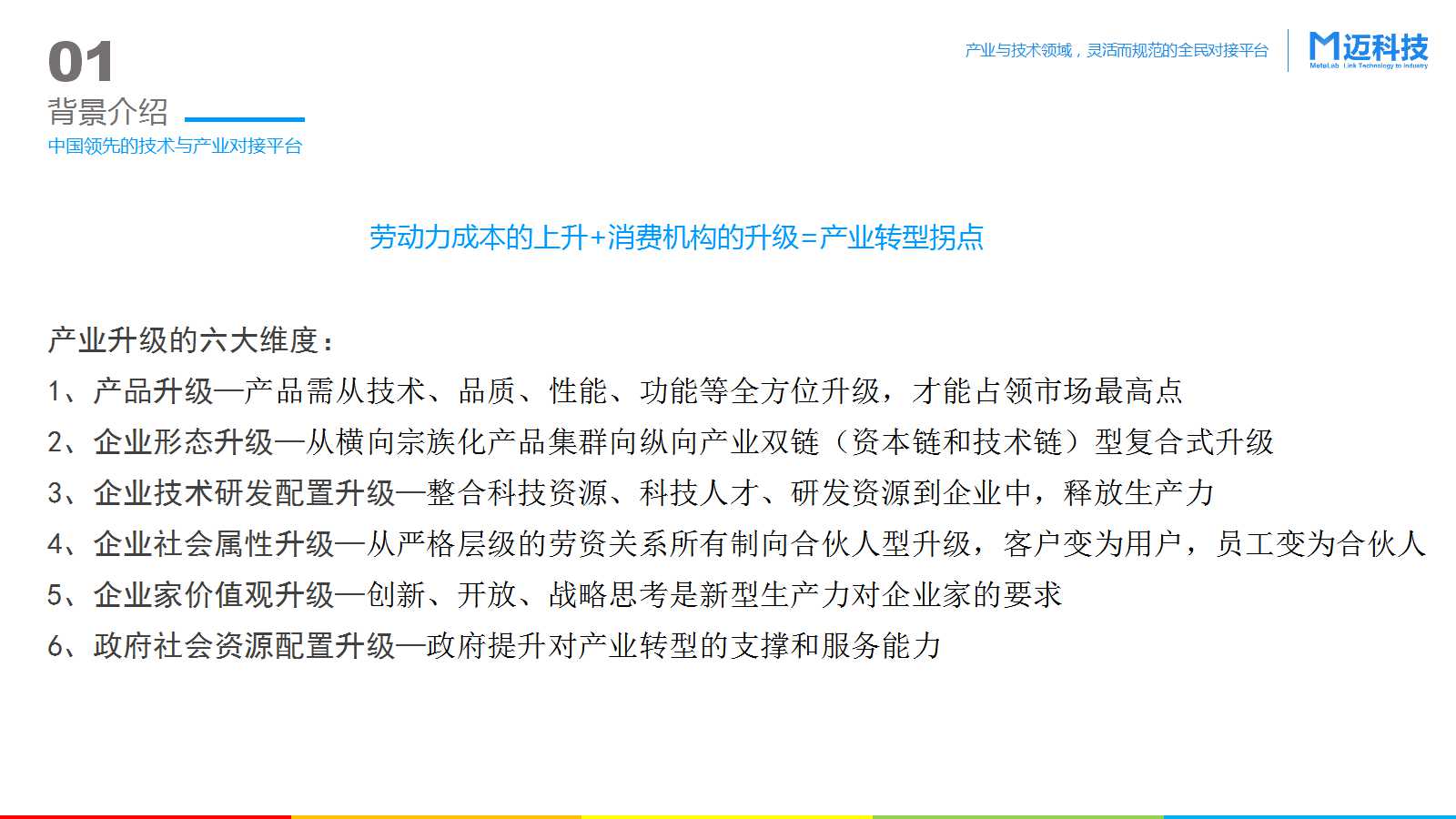 迈科技MetaLab 致力于 Link Technology to Industry——成为 “全球研发枢纽”,以应用技术对接服务为核心,提供产业的整体技术解决方案,组织协调企业技术及产品研发升级,助力中国产业转型与技术升级。