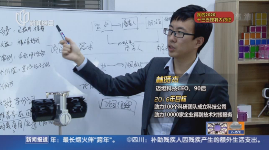2016年新年第一天,上海电视台以“我的2020·十三五规划大讨论:畅谈创新创业”为主题对“迈科技”进行的采访报道在上视新闻频道播出。
